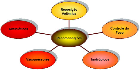 Os dois objectivos fundamentais são a administração de antibioterapia adequada e a optimização da entrega tecidular de oxigénio.