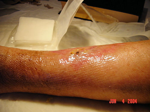 Este indivíduo apresentava uma Úlcera Venosa de Classe 6 (confirmada pelo Cirurgião Vascular), no Membro Inferior Direito, resultante de insuficiência venosa crónica, com 8 meses de evolução (trata-se portanto de uma ferida crónica). O indivíduo desconhece o valor do Índice de Pressão Tornozelo – Braço (IPTB).