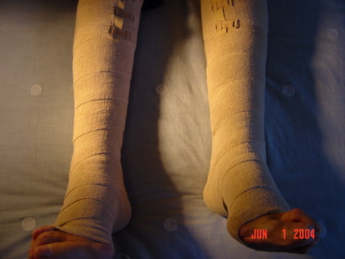 O uso de terapia compressiva (Fig.12) – contudo, relembro, ter cuidado com a pressão exercida;- O repouso no leito com o membro inferior elevado, no mínimo uma hora por dia;