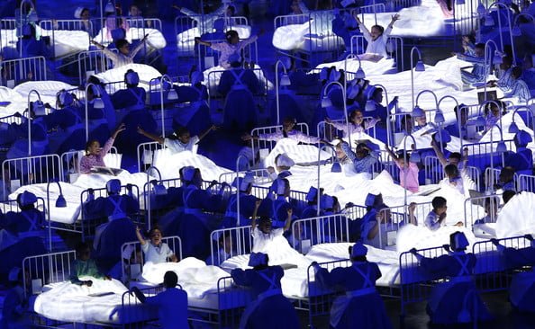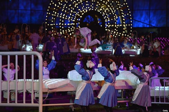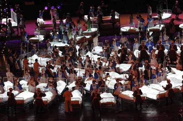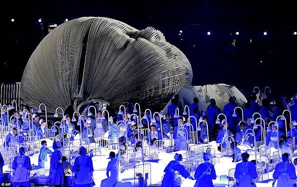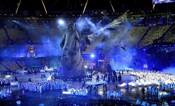 Os Jogos Olímpicos de 2012 realizaram-se em Londres e a cerimónia de abertura tentou retratar o melhor de Inglaterra.
