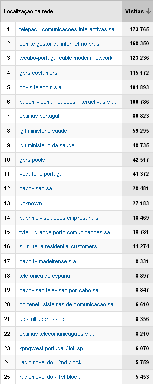 Foram utilizados 3.658 diferentes fornecedores de Internet para aceder ao Forumenfermagem. Apresentamos os 25 mais utilizados:
