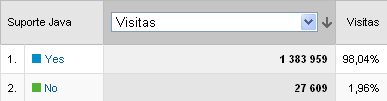 Utilizadores com Navegadores de Internet com suporte de linguagem Java:
