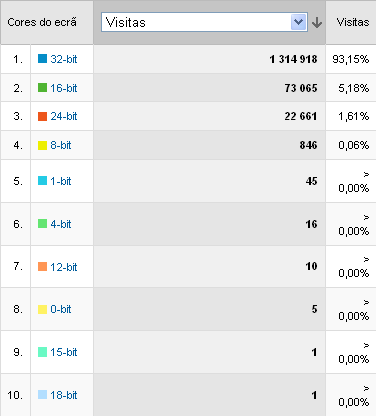Definição de cores de ecrã mais utilizadas: