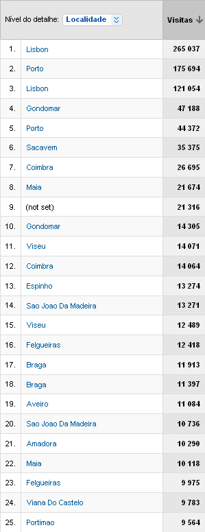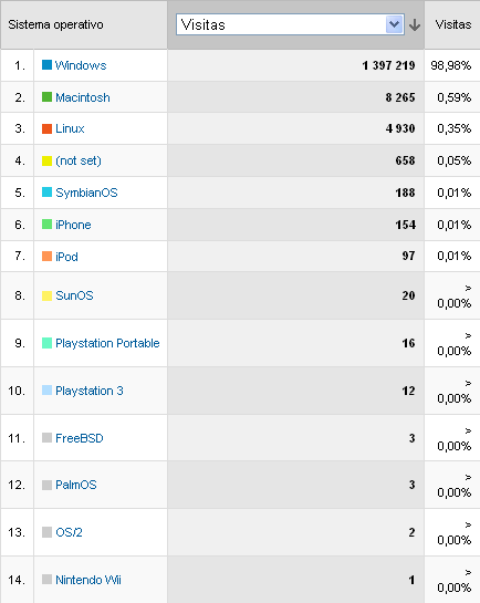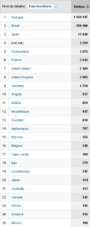 (dados começaram a ser arquivados pelo Google Analytics a partir de Junho 2006)