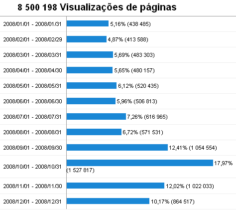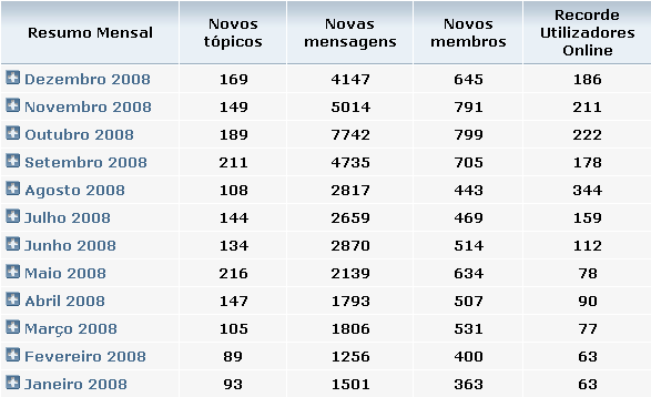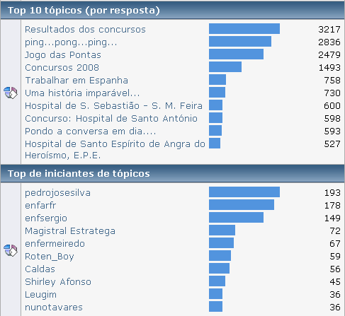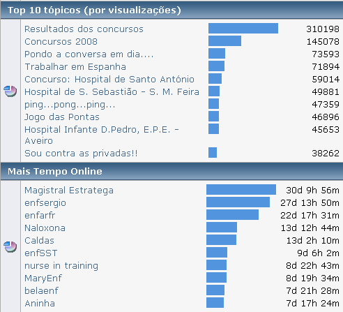 O ano de 2008 começou por ser atribulado para o Forumenfermagem. A existência deste projecto esteve ameaçada por insuficientes recursos do nosso fornecedor de alojamento face às exigências do tráfego que estávamos a ter no site. Para além de tentarmos resolver uma série de problemas derivados, estivemos sob mobbing pelo próprio fornecedor de alojamento no sentido de nos transferirmos. E foi o que fizemos, testámos servidores nacionais, americanos, australianos, holandeses e por fim no Reino Unido, onde temos agora o site estável. Esta breve referência foi para justificar o facto de termos uma quebra enorme nos primeiros meses do ano a nível estatístico, mas conseguimos recuperar e superar as expectativas.