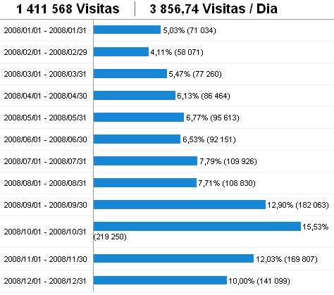 Dados foram fornecidos em parceria com o Google Analytics. Apresentamos dados estatísticos gerais e específicos do Site e também em particular do Fórum de Discussão no ano de 2008.