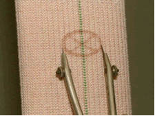Também o facto de existirem umas guias centrais ovais, impressas na ligadura que contêm duas linhas que se intersectam, que se modificam para círculos com ângulos rectos no seu interior quando a ligadura sofre extensão, facilita a técnica de aplicação e garante a compressão efectiva(Figura nº1 e Figura nº2).