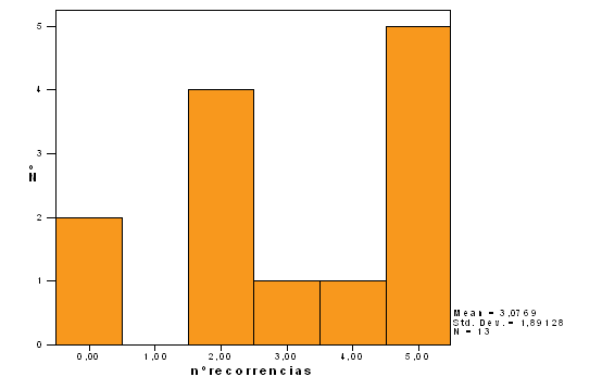 Quadro nº 4- Distribuição dos sujeitos quanto ao número de recorrências (n=13)