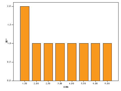 Em relação à úlcera em si, 92,3% dos pacientes apresentava a úlcera de perna como recorrência de uma úlcera anterior, 45,5% dos pacientes já tinha tido 5 recorrências (Quadro nº 4), com uma média de 3 recorrências e um desvio padrão de 1,89, e 27,3% dos pacientes apresentava a úlcera com uma duração de 48 meses. Em relação às dimensões da úlcera, verificou-se que existia uma variação entre 1 cm e 6 cm, com uma largura média de 2,64 cm (Quadro nº 5). No que respeita ao comprimento, verificou-se que o comprimento variava entre 1,5 cm e 8 cm, com um comprimento médio de 3,77 cm. Quanto aos tecidos atingidos em termos de profundidade, 83,3% dos pacientes apresentava atingimento do tecido subcutâneo (Quadro nº6).