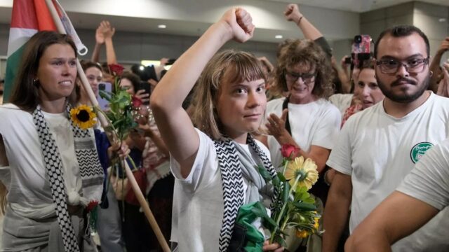Início Atualidade Greta Thunberg e mais 170 ativistas da flotilha chegaram à GréciaNotíciasAtualidadeGreta Thunberg e mais 170 ativistas da flotilha chegaram à GréciaPor forumenfermagem - 6 Outubro, 2025810FacebookTwitterWhatsAppLinkedinTelegram Vários ativistas da flotilha, que foram detidos por Israel na semana passada por tentarem levar ajuda humanitária a Gaza, testemunharam sobre os maus-tratos infligidos pelas autoridades israelitas à chegada a Atenas. Israel nega as acusações. Leia na íntegra em EuroNews.com