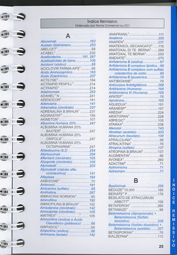 Ao longo das suas 331 páginas poderá encontrar informação relativa a cerca de 500 medicamentos disposta em quadros subdivididos em 5 colunas: