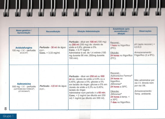 Diluição/Administração (vias de administração adequadas, compatibilidade dos medicamentos com as diferentes soluções de perfusão, volumes e concentrações possíveis);