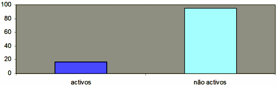 No que diz respeito às características profissionais da nossa população em estudo verificamos que, em termos laborais, apenas um grupo reduzido de indivíduos se encontra activo, apresentando o valor de 15,18%, dos quais 2,67% são mulheres. A grande fracção da amostra, com mais de 80%, é constituída por elementos que não exercem qualquer tipo de funções profissionais, encontrando-se inactivos. Será necessário, no entanto, referir que a classificação de activo e/ou não activo é referente à presença ou ausência de actividade laboral remunerada, desempenhada no exterior ao domicílio. Deste modo, o trabalho doméstico não pertence nem se enquadra nesta terminologia (Quadro 1.8).