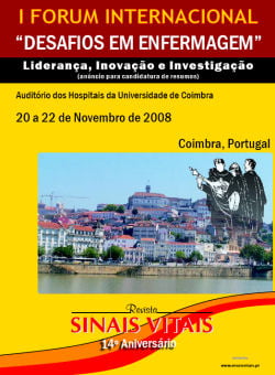 Nos passados dias 20, 21 e 22 de Novembro de 2008 realizou-se o I Fórum Internacional: Desafios de Enfermagem nos Hospitais Universitários de Coimbra, versou várias temáticas relacionadas com os cuidados de Enfermagem nomeadamente a Liderança, Inovação e Investigação.