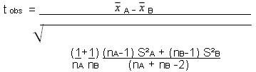 que obedece a uma lei de student (nA + nB -2) com 58 graus de liberdade e um nível de significância (α) de 5% (0.05).