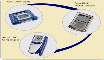 “A nova Accu-Chek Compact Plus, envia através de infravermelhos os dados em memória, que são analisados pelo médico para averiguar a possibilidade de utilização de Bomba Infusora.” | ![]() |